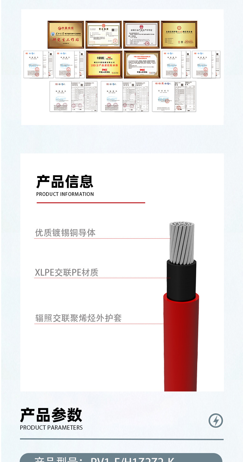 國標交聯輻照聚烯烴絕緣太陽能光伏線鍍錫銅絲PV1-F(H1Z2Z2-K)